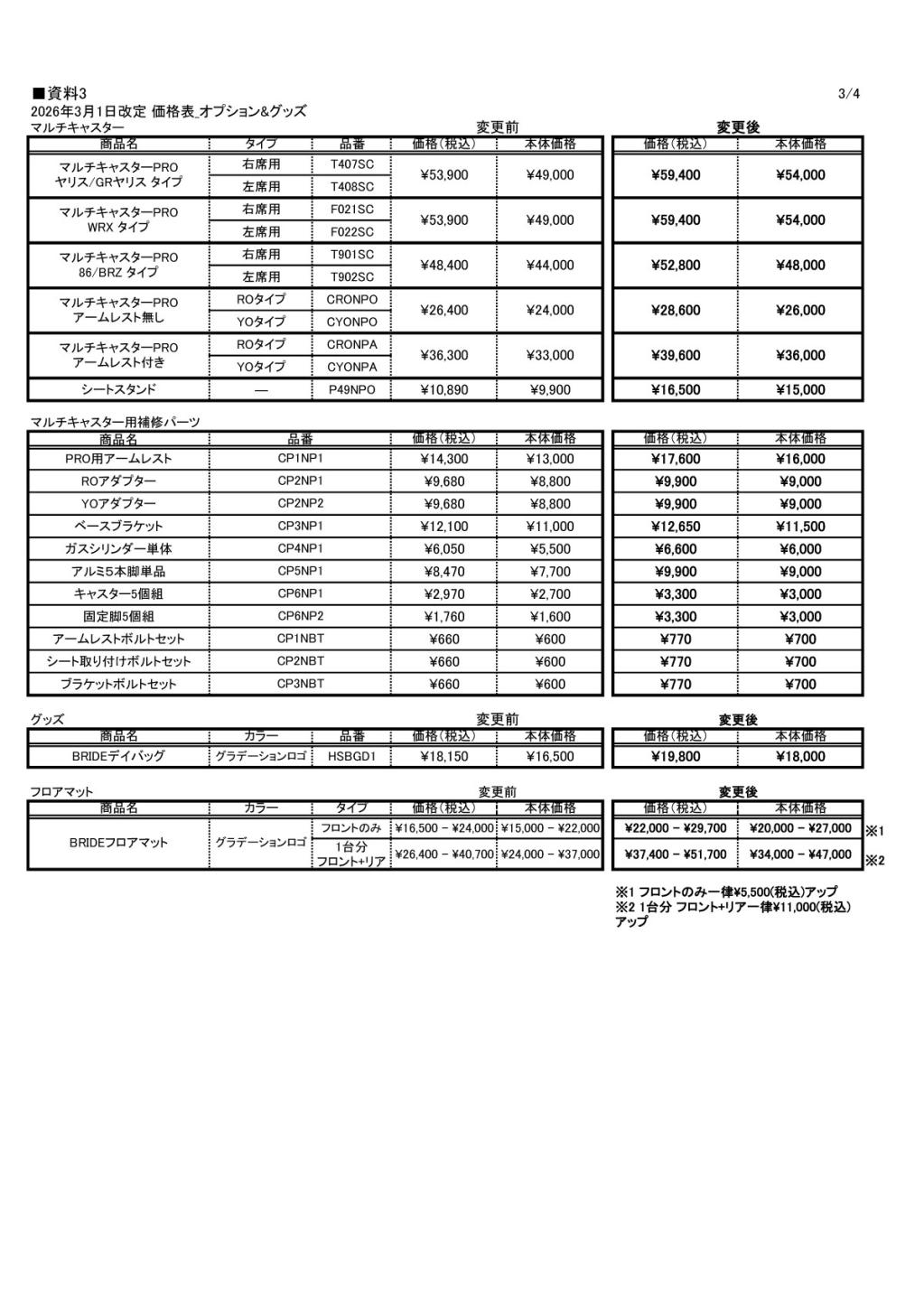 ブリッド株式会社(愛知県東海市、代表取締役社長:高瀬嶺生)は、原材料費・物流費等の高騰の影響を受け、各製品の現行価格の維持が困難な状況となったため、2026年3月1日(日)のメーカー受注分より各製品の価格改定をいたします。皆様には何卒ご理解を賜りますようお願い申し上げます。価格については下記を参照ください。