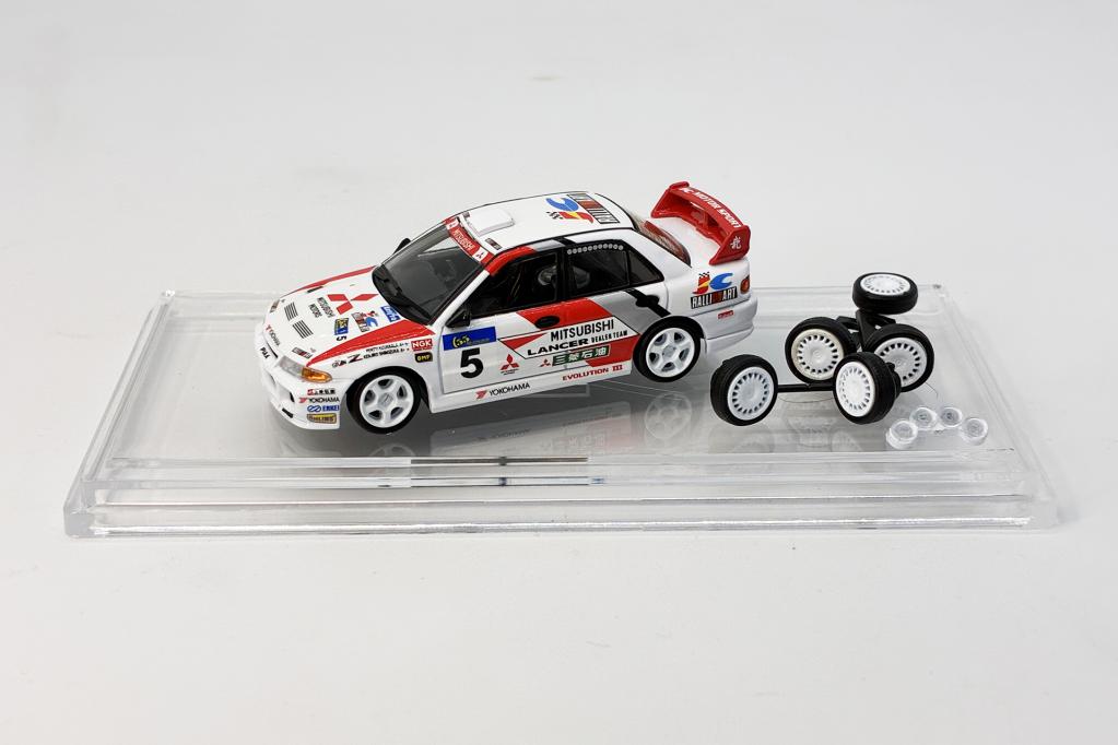 1/43の三菱パジェロは、篠塚建次郎氏のアフリカエコレース2023参戦に向けて支援するLKPプロジェクトのリターンアイテムとして作られたスペシャルモデルです。1/64の三菱ランサーEvoⅢは付属パーツのライトポッドが着脱でき、ターマックタイヤとグラベルタイヤが交換可能です。どちらも希少なモデルカーですので、ぜひこの機会にお買い求めください。