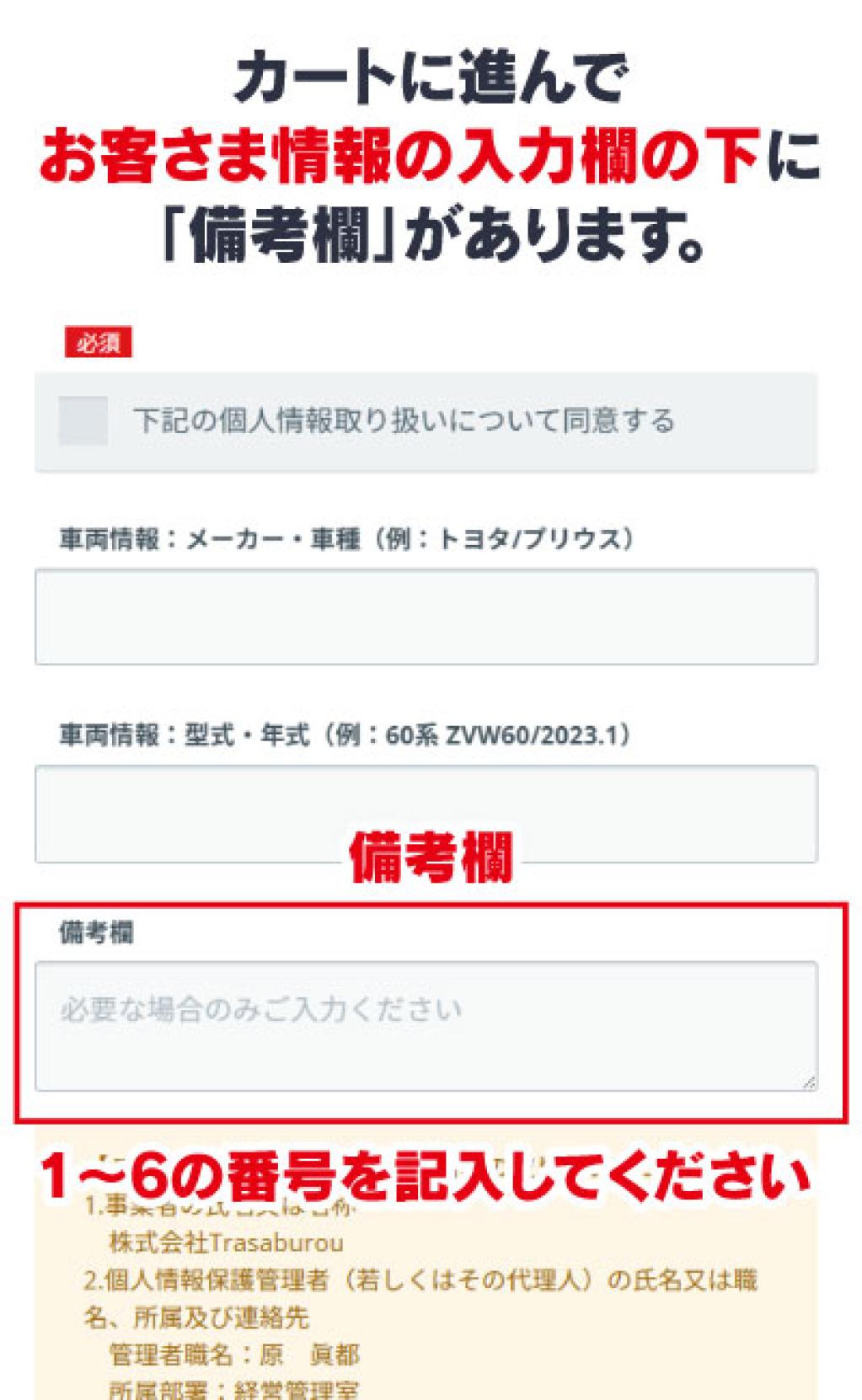 ※「備考欄」は、カートに進んだ後、お客様情報入力欄の下にございます。