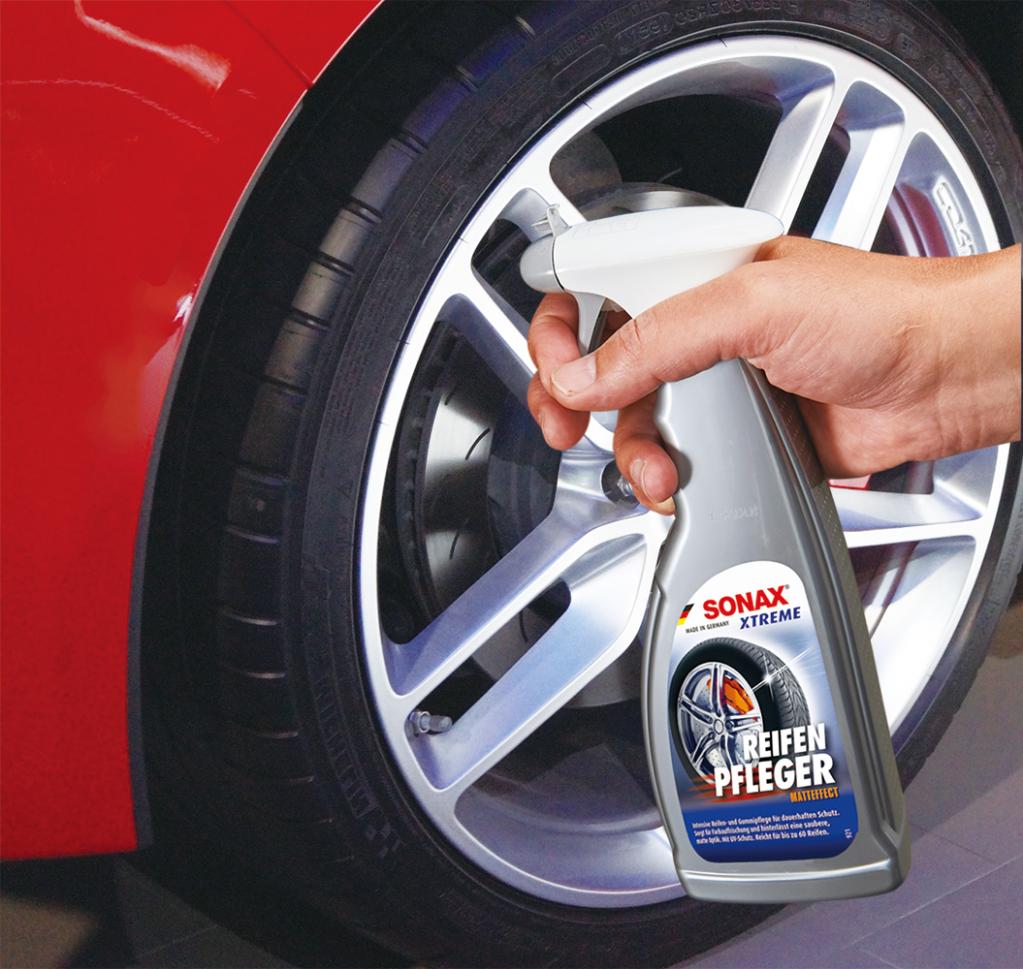 自動車タイヤ、外装ゴムパーツ、外装未塗装樹脂に使用できるツヤ出し保護剤。汚れ、紫外線、オゾンなどの劣化原因からタイヤを保護。濡れたタイヤにも使える。水性でタイヤにやさしい。