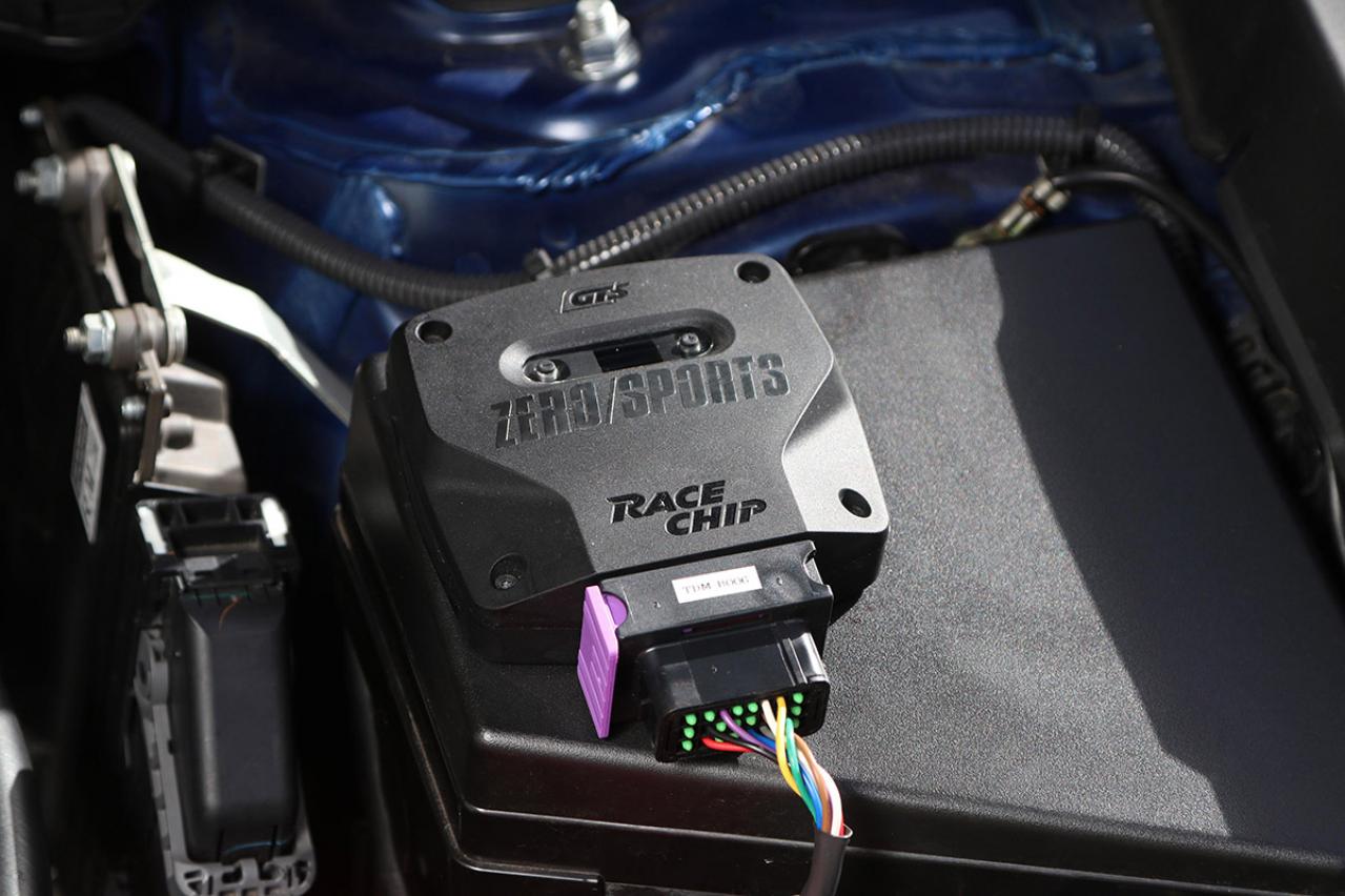 この製品はメインECUのデータを書き換えるのではなく、ブースト・インマニ・カム角・エアフロの4つのセンサーに擬似信号を送ることでブーストアップを叶えるもの。ゼロスポーツのテストでは11.1ps&1.2kgmの出力向上を確認している。全域でのパワー&トルクアップはストリートでの乗りやすさ向上にも寄与してくれる。
