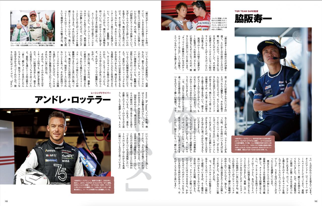 彼らの半世紀もの歴史を紡いだ足跡と名シーン50年分のほか32台を厳選した名車カタログ、13名の関係者たちによるエピソードトーク、モリゾウ氏および鈴木亜久里と舘トムス会長によるビッグ対談など「トムスによる、トムスファンのための一冊」とも言うべき一冊です。