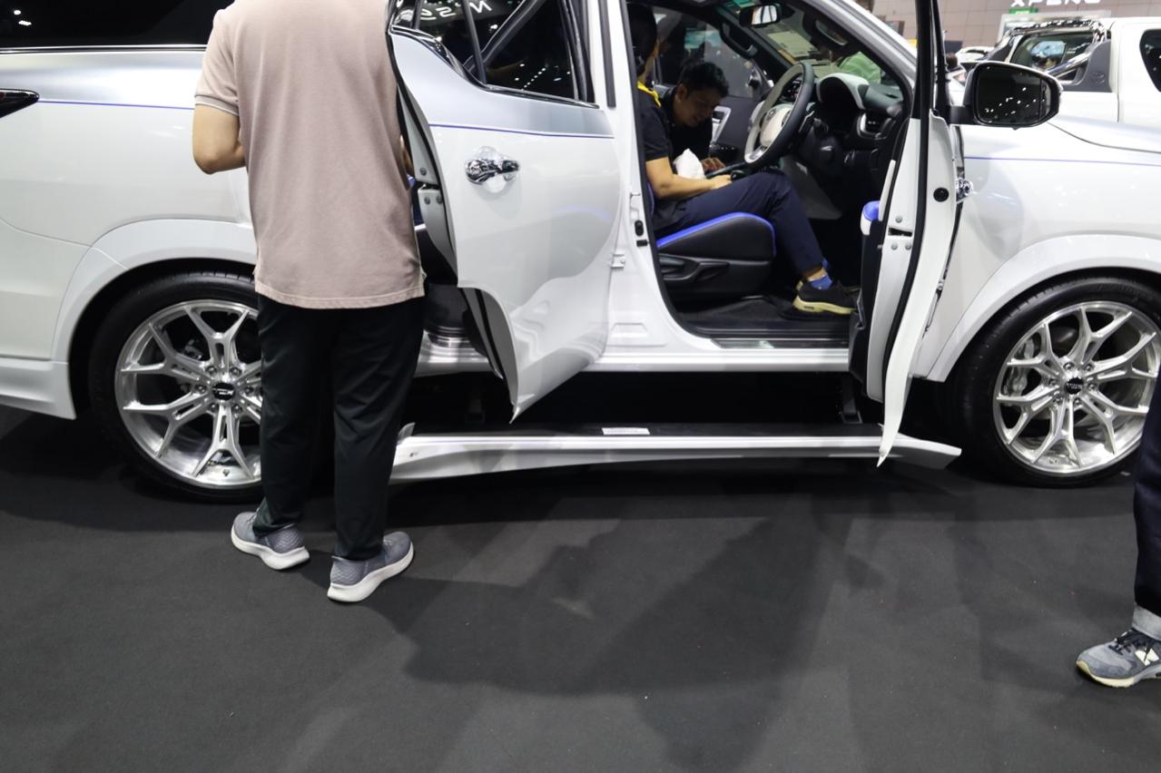 おなじく日本では未発売となるトヨタのSUV『FORTUNER(フォーチュナー)』も、カスタムされた車両の姿が。ビッグモーターセールのトヨタブースでは、TRDのスポーティーなエアロパーツが装着され白&青を基調とした内装に仕上げられたフューチャーコンセプトモデルが展示され注目を集めていた。