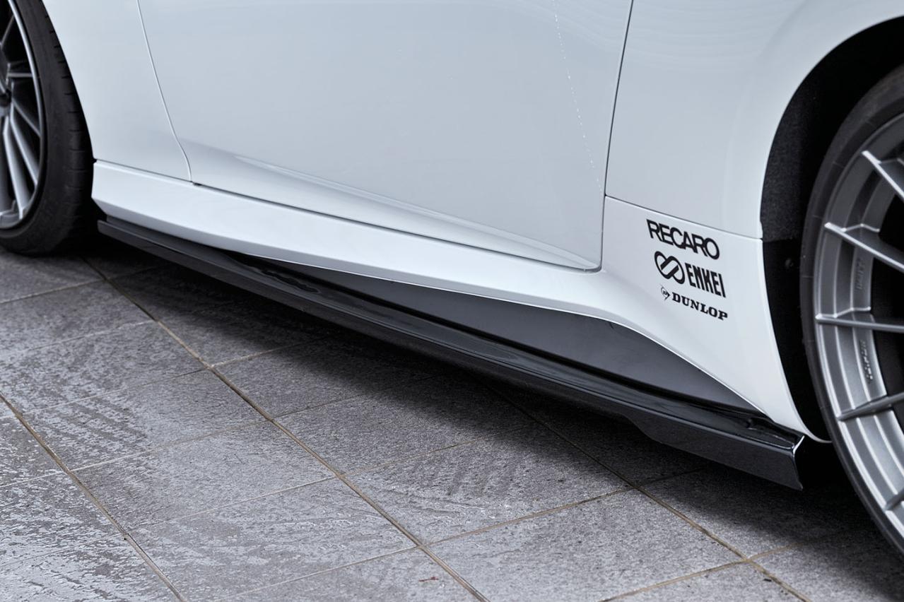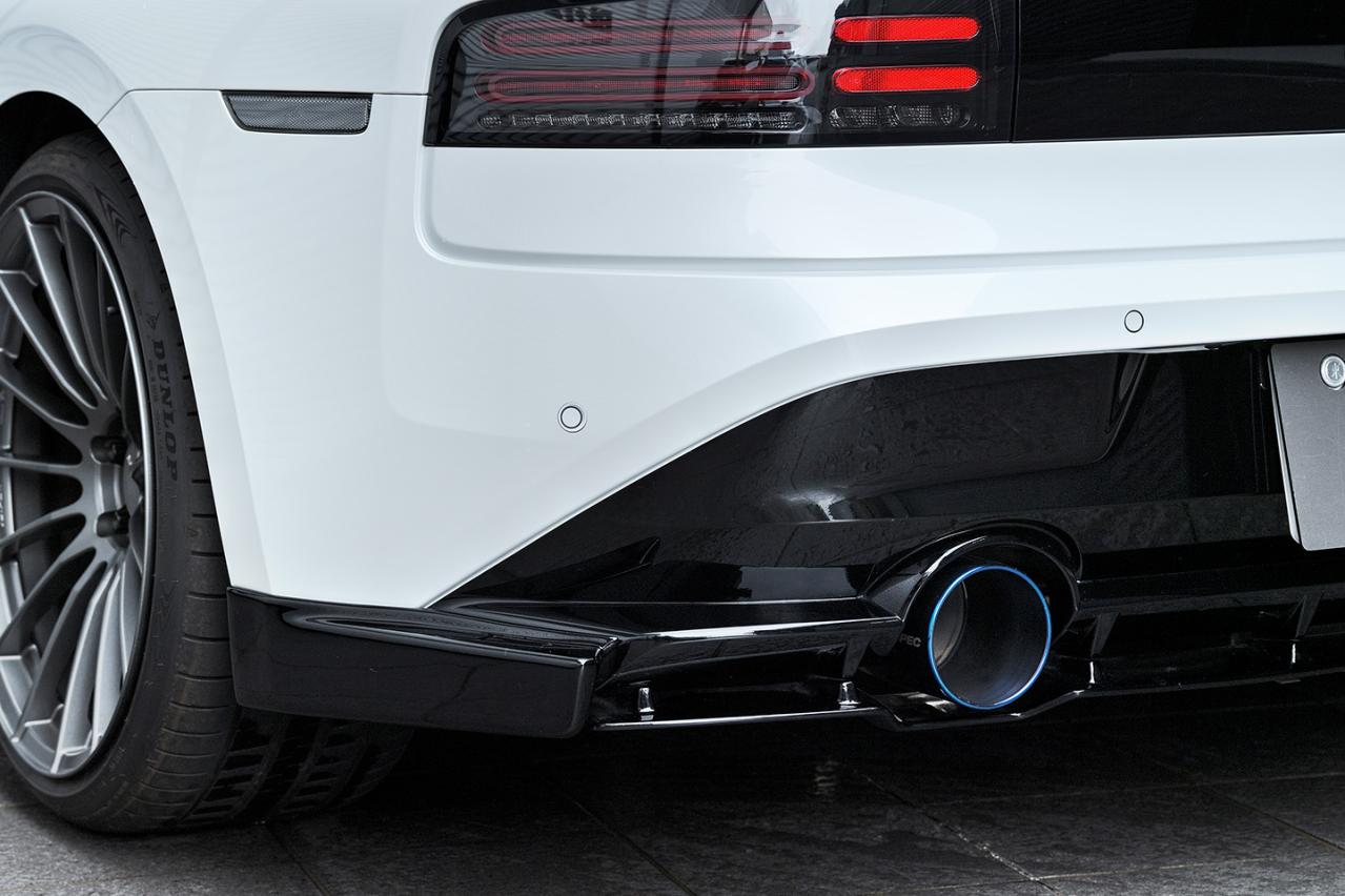 サイドは流れを強調する サイドスポイラー(10万4500円) がワイドな印象を付与しつつ、フロア下の整流にも貢献。リヤにはウイングを反転させたような個性的造形ながら、純正と無理なく馴染む リヤディフューザー(センター:6万500円/サイド:5万5000円) を設定する。