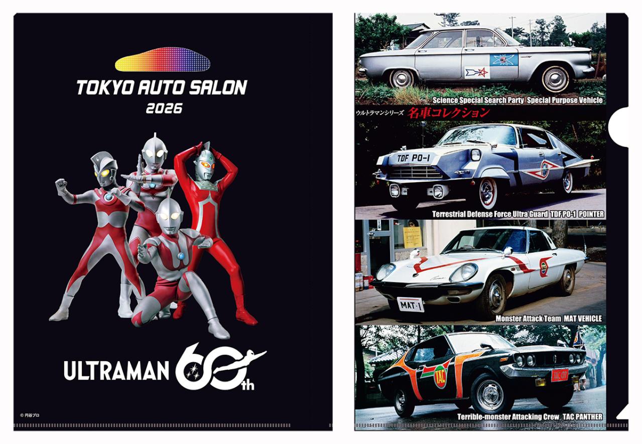北ホールの『オートサロン ウルトラマン60周年コラボグッズ &エヴァグッズ ショップ』では、放送から60周年を迎えるウルトラマンの勇姿を描いたTシャツや、『ウルトラセブン』に登場したウルトラ警備隊のポインターのTシャツ、『ウルトラマン&ウルトラセブン』『ウルトラセブン&ポインター』のアクリルスタンドやウルトラマンシリーズの懐かしい名車がズラリ並んだクリアファイルなどを販売。