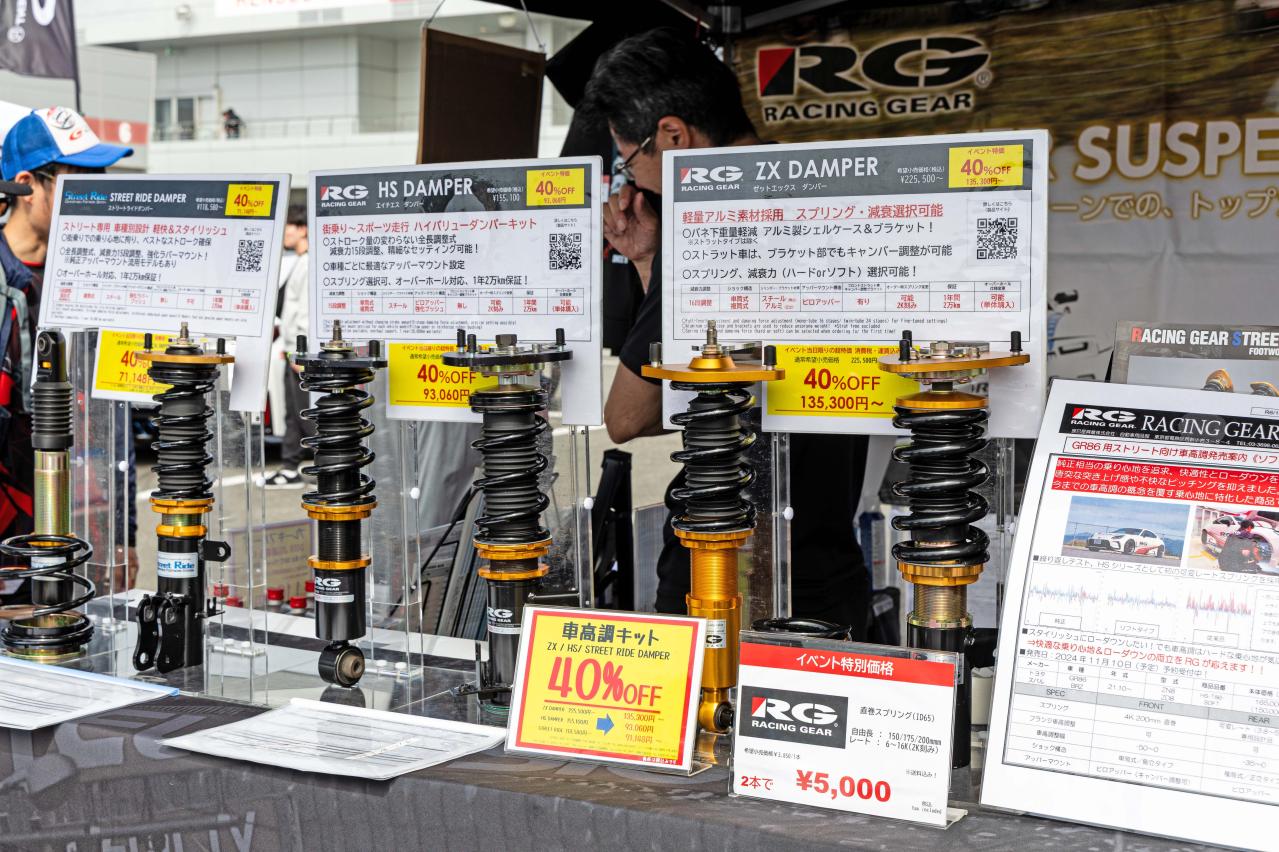 HSダンパー ソフトタイプ以外にも、今年はユーザーの声や走行シーンなどを反映しながらGR86/BRZ向けの商品展開を強化していくそうなので期待! また、レーシングギアでは、“ドリフトスター レーシング”からD1GPに参戦している中村 龍選手をサポートしているので、その活躍も必見だ。